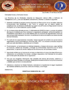 Las directivas del Sindicato Industrial de Integración Laboral SIIL y Unificado de Trabajadores SUT de Codelco División Andina comunican respecto al proceso de negociación colectiva y el trabajo sindical que se está realizando.
